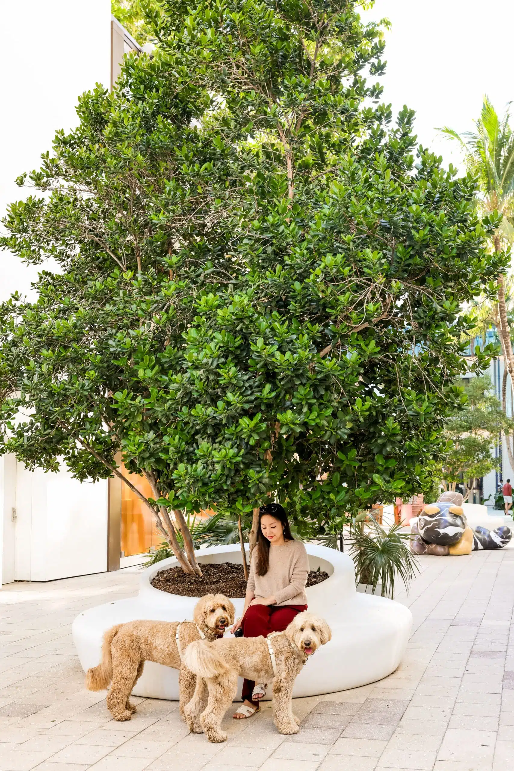 Art here is encountered organically — between cafés, shops, and shaded walkways — rather than as a destination unto itself. The district also features many dog-friendly outdoor cafés and patios, making it easy to linger between installations.