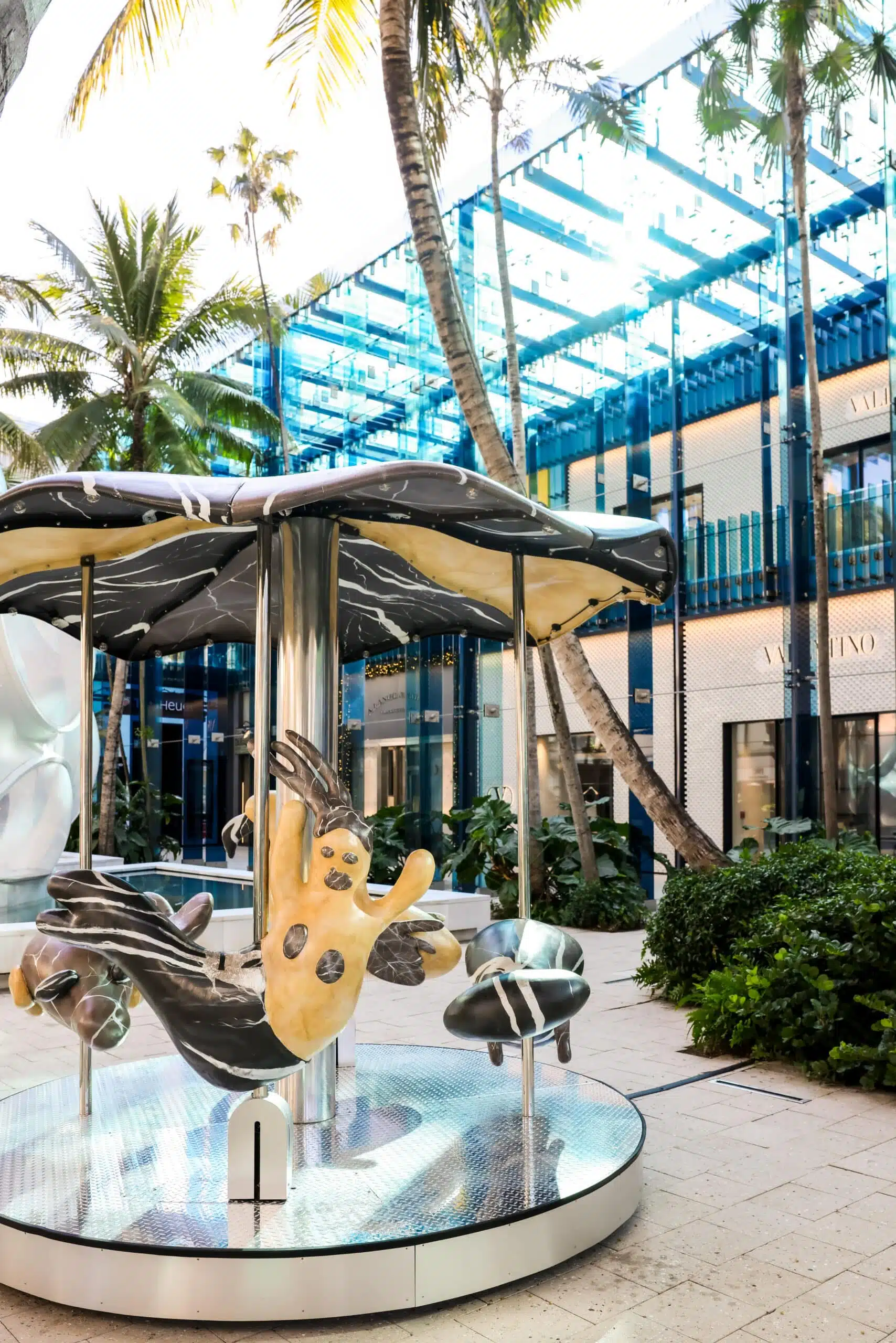 The Miami Design District blends architecture, fashion, and public art into a walkable outdoor neighborhood. Sculptures, murals, and installations are integrated into plazas, storefronts, and streets, making art part of the everyday streetscape.