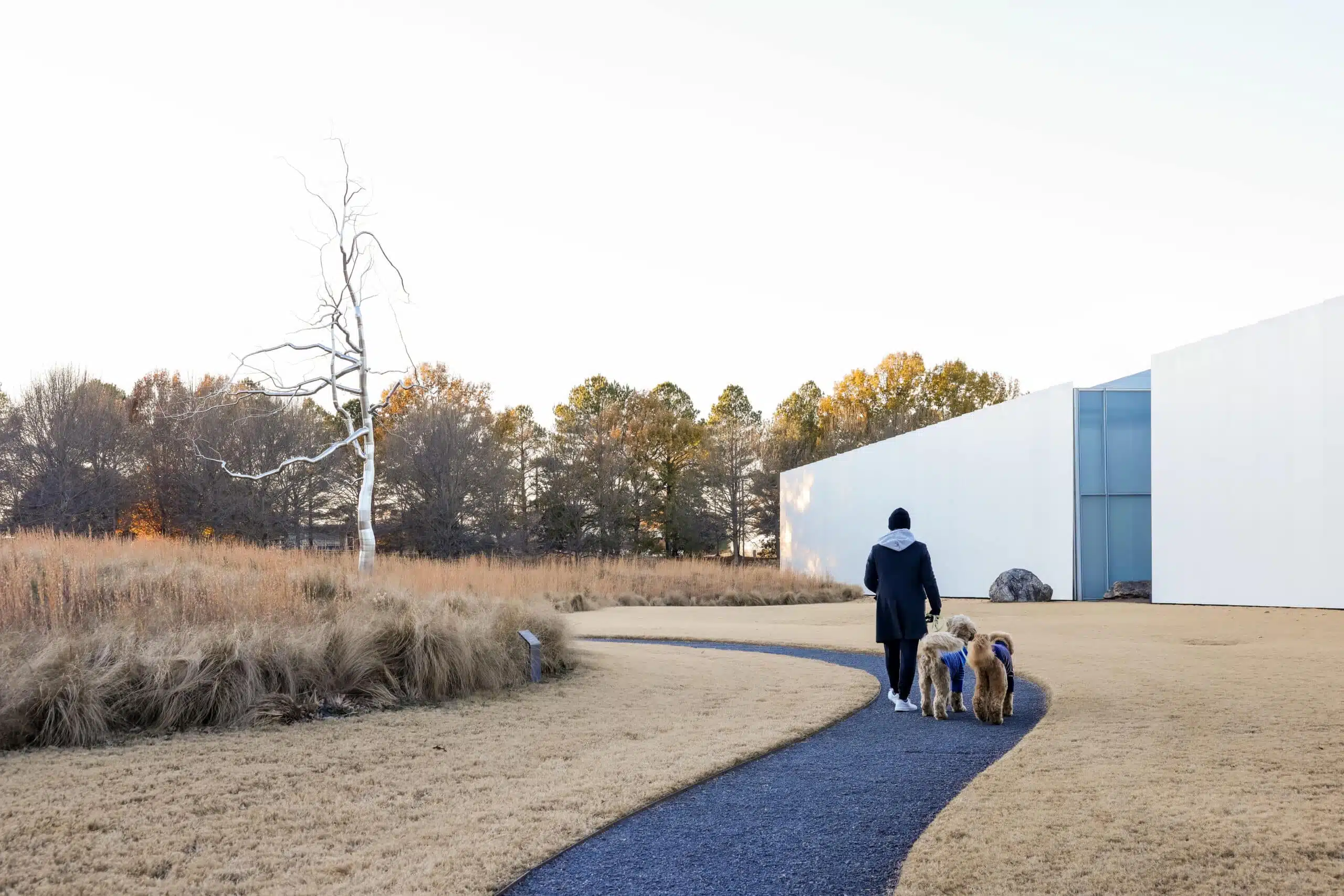 Dog Policy: Dogs are welcome on leash throughout the outdoor park and trail system. Dogs are not permitted inside museum buildings. Visitors should remain mindful of artwork, wildlife, and other guests while exploring the grounds.