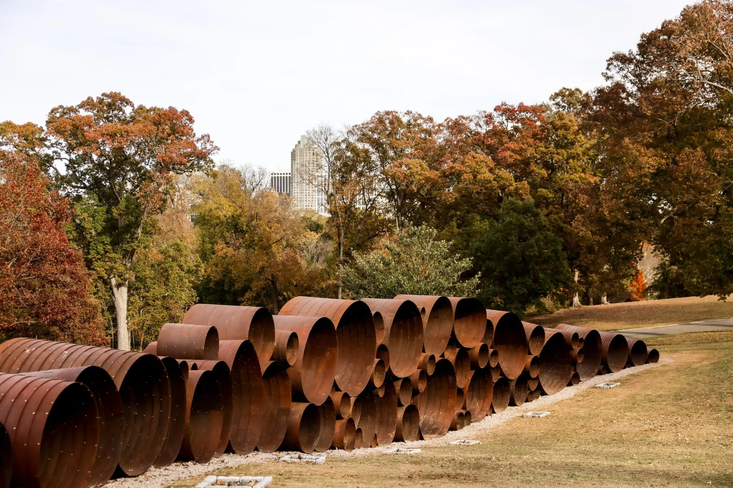 Dorothea Dix Park is a large urban park in Raleigh that has become a significant site for public art, with installations woven into open fields, wooded paths, and city overlooks.